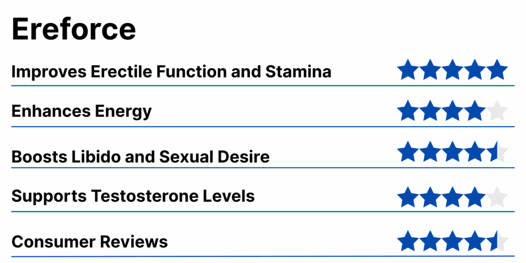 This makes Ereforce a truly revolutionary solution — not only for enhancing male performance, but for eliminating the true biological barrier behind declining testosterone and weakening erections. It’s no surprise that over 95% of participants in our evaluation gave it a top rating — a reflection of its ability to deliver real, lasting results by targeting the root cause.