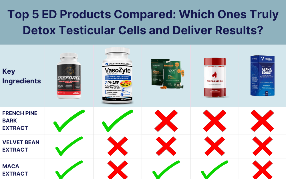 Our comparison isn’t here to discredit every other supplement or ingredient on the market. But let’s be honest — the latest scientific research, widely covered by leading news outlets across the globe, makes one thing crystal clear: only a handful of ingredients truly work when it comes to detoxifying testicular interstitial cells — the critical trigger for real, lasting Erectile Dysfunction.
